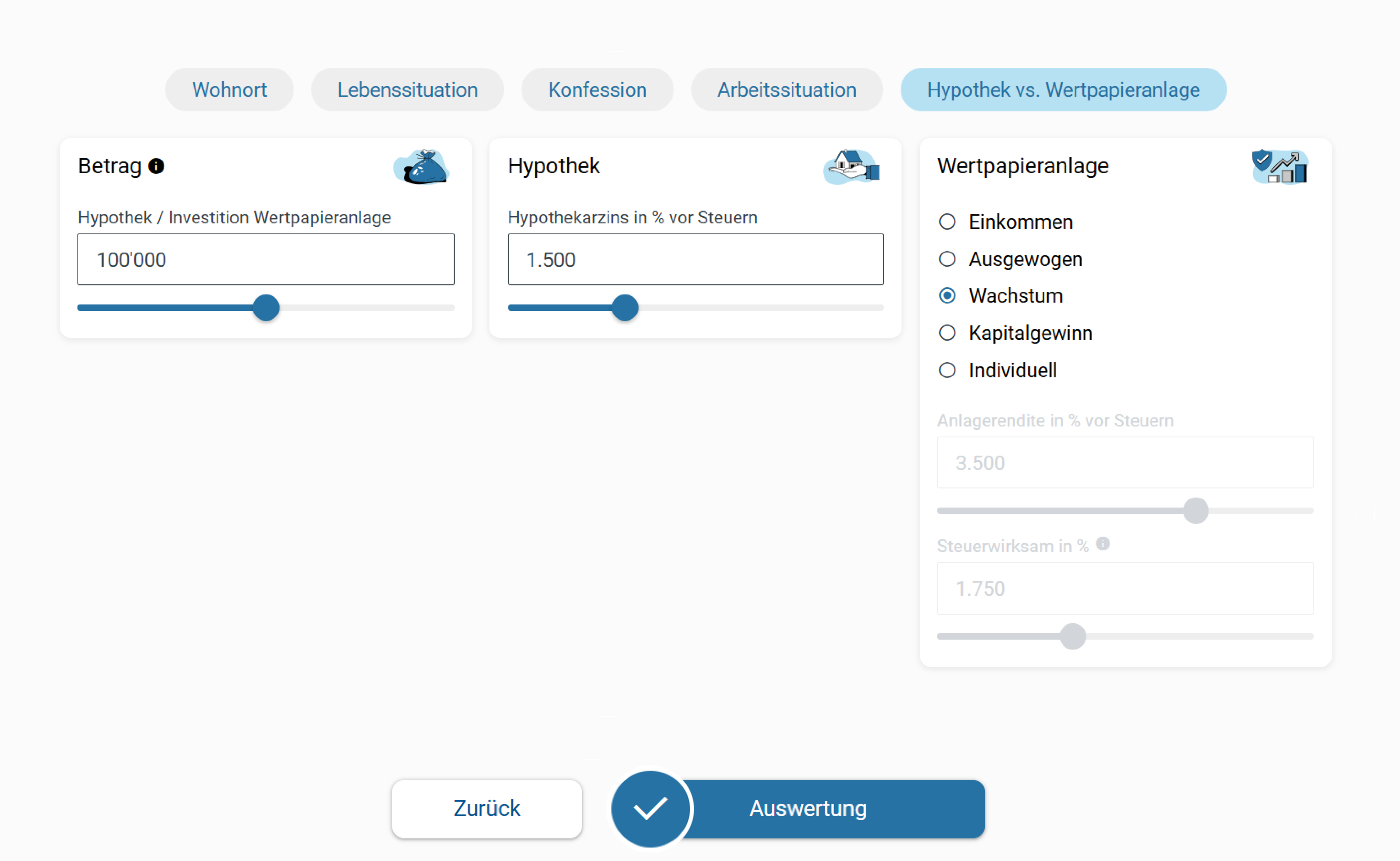 Ob es sich lohnt, eine Hypothek zu amortisieren oder ob eine Investition in eine Wertpapieranlage sinnvoller ist, zeigt Ihnen dieser Rechner mit wenigen Klicks.