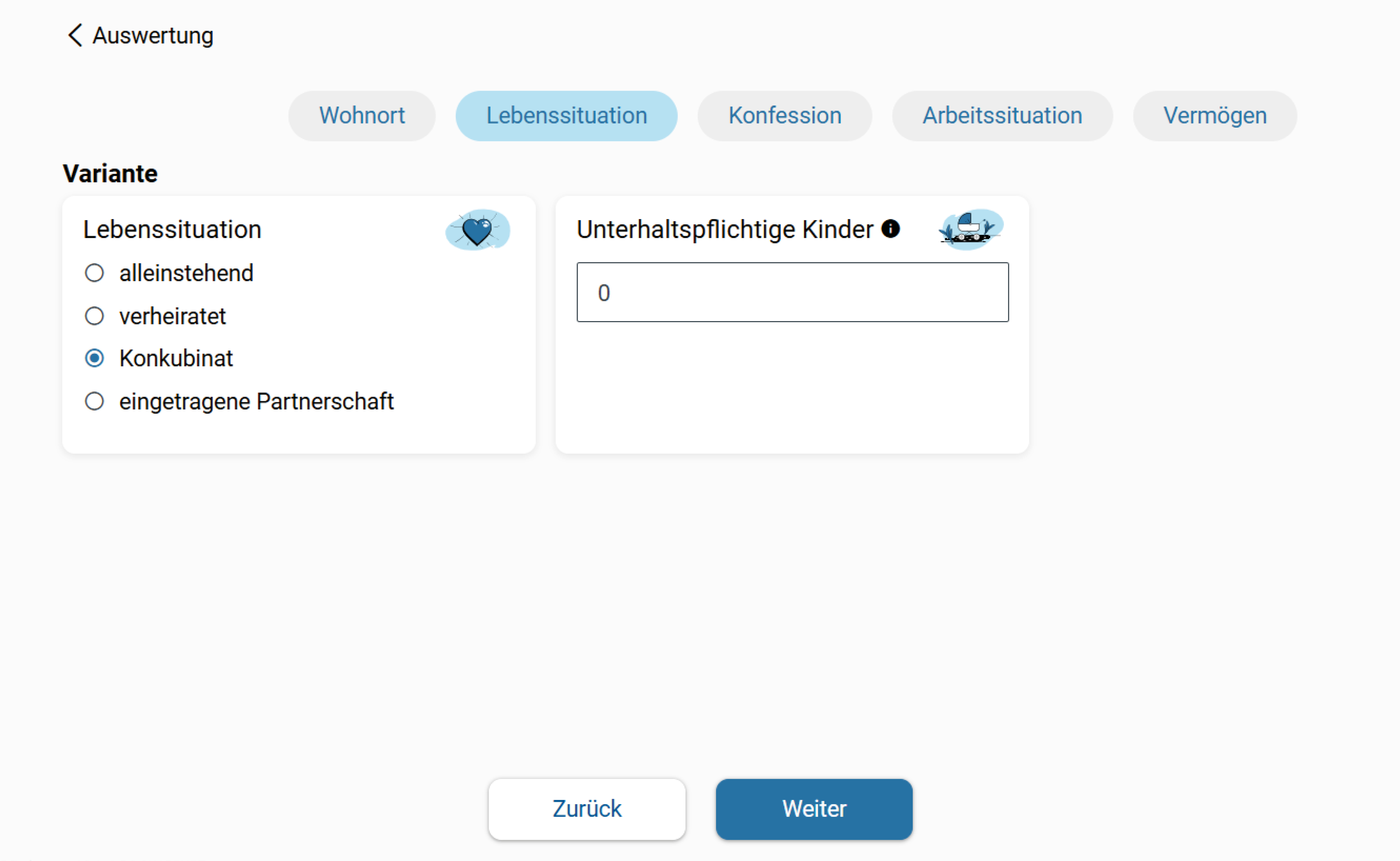 - Anpassung der Lebenssituation (Heirat, andere Anzahl unterstützungspflichtige Kinder)
