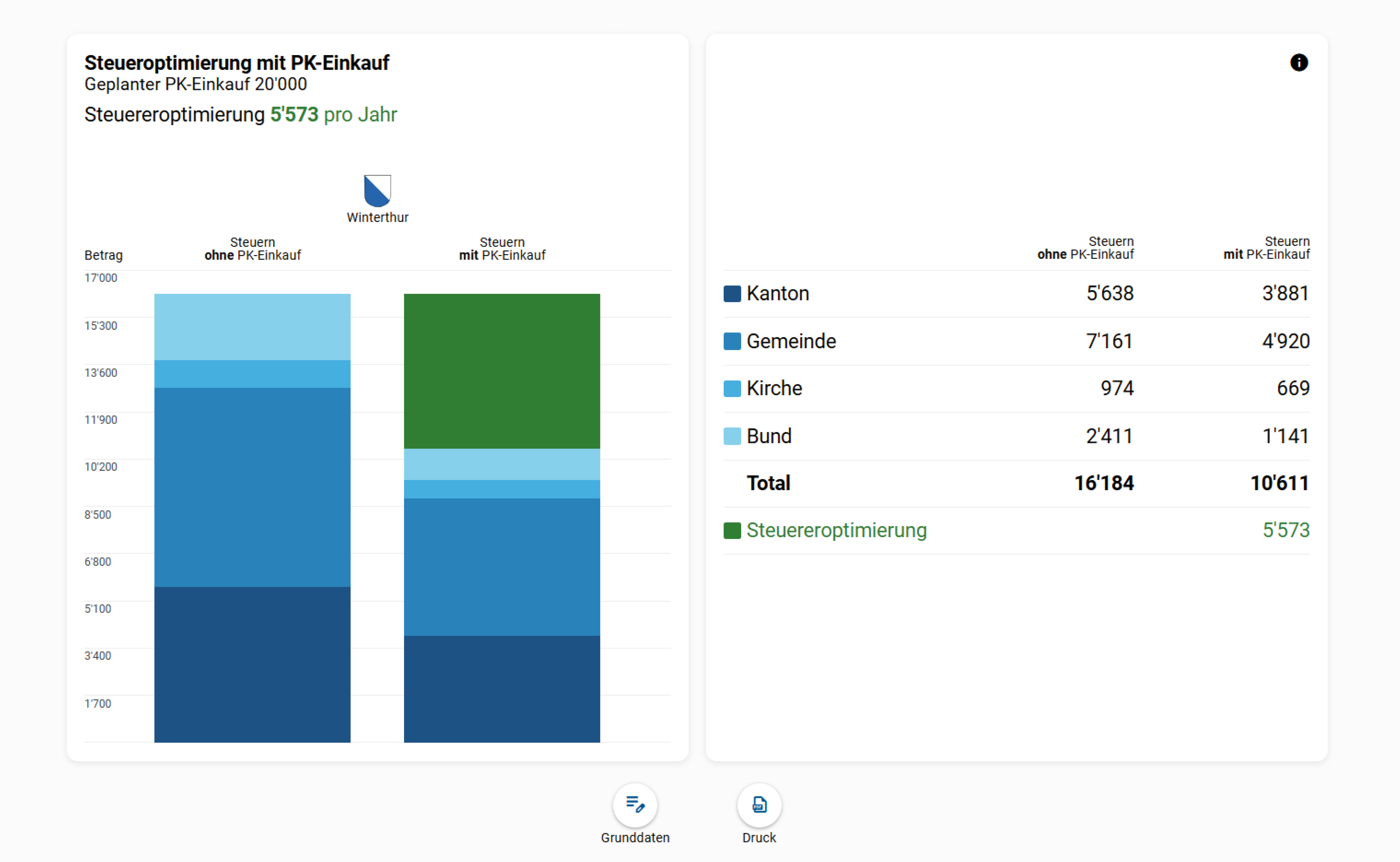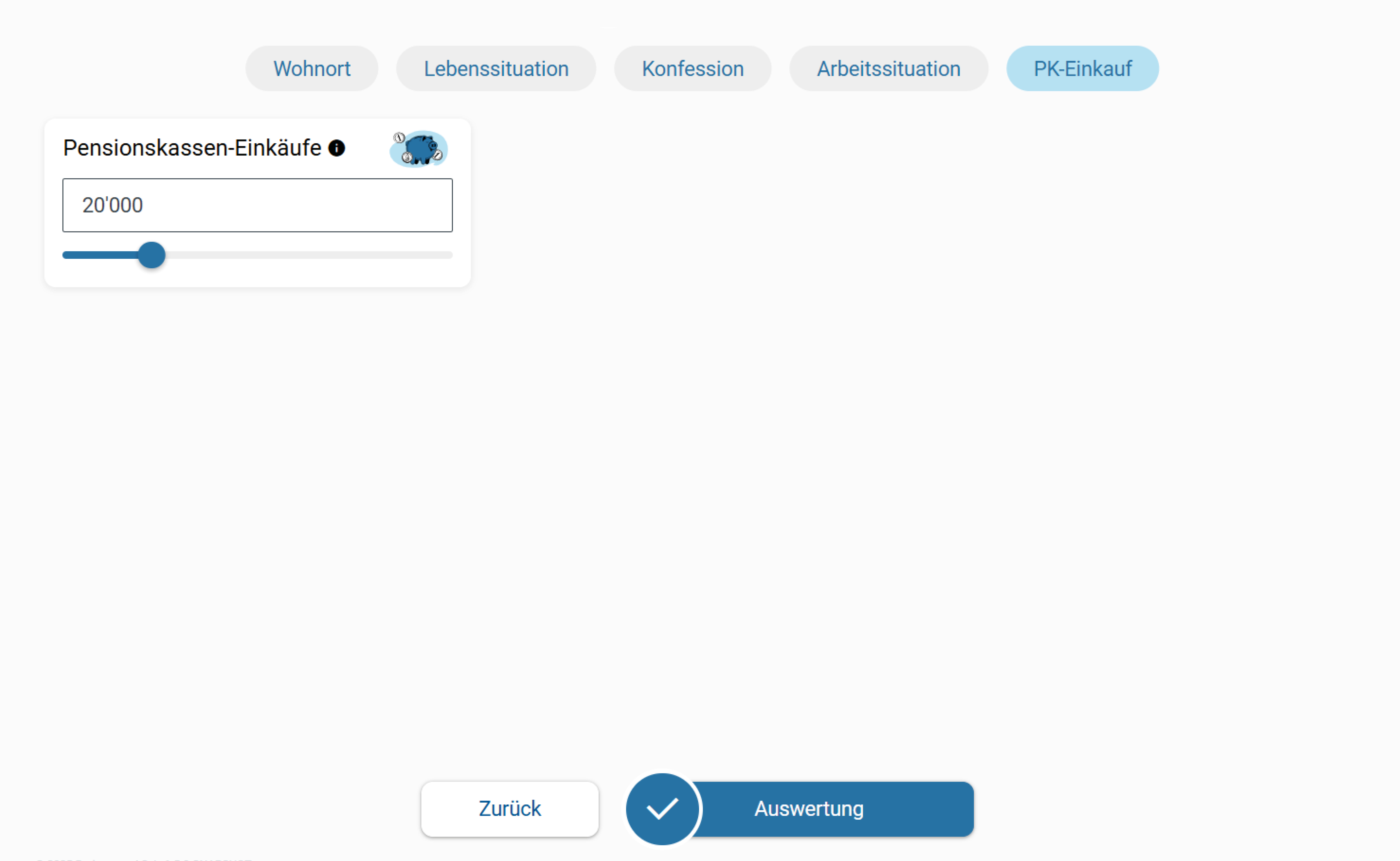 Ermitteln Sie eine mögliche Steuerersparnis durch einen Einkauf in die Pensionskasse – schnell, einfach und auf die Kundensituation abgestimmt.