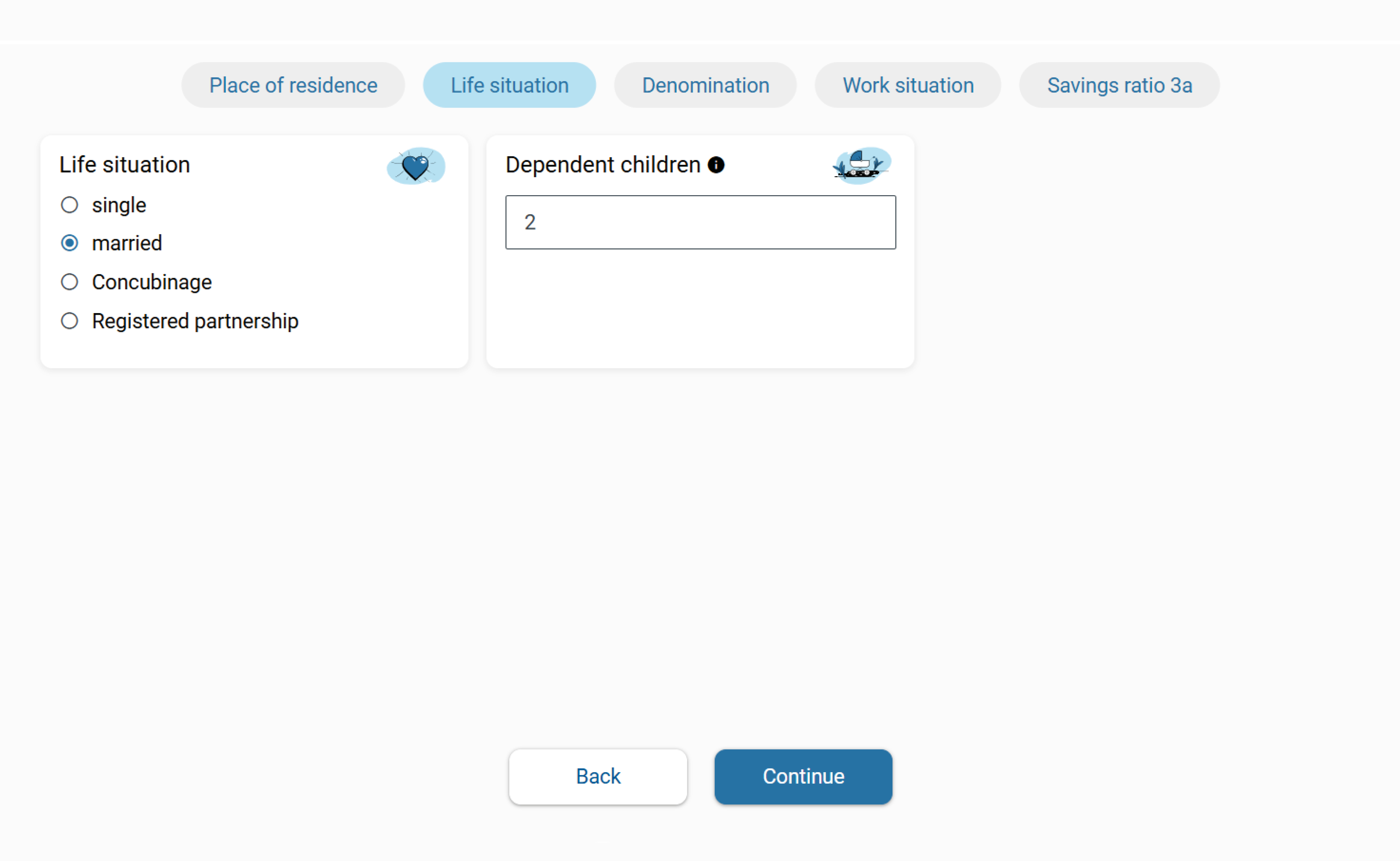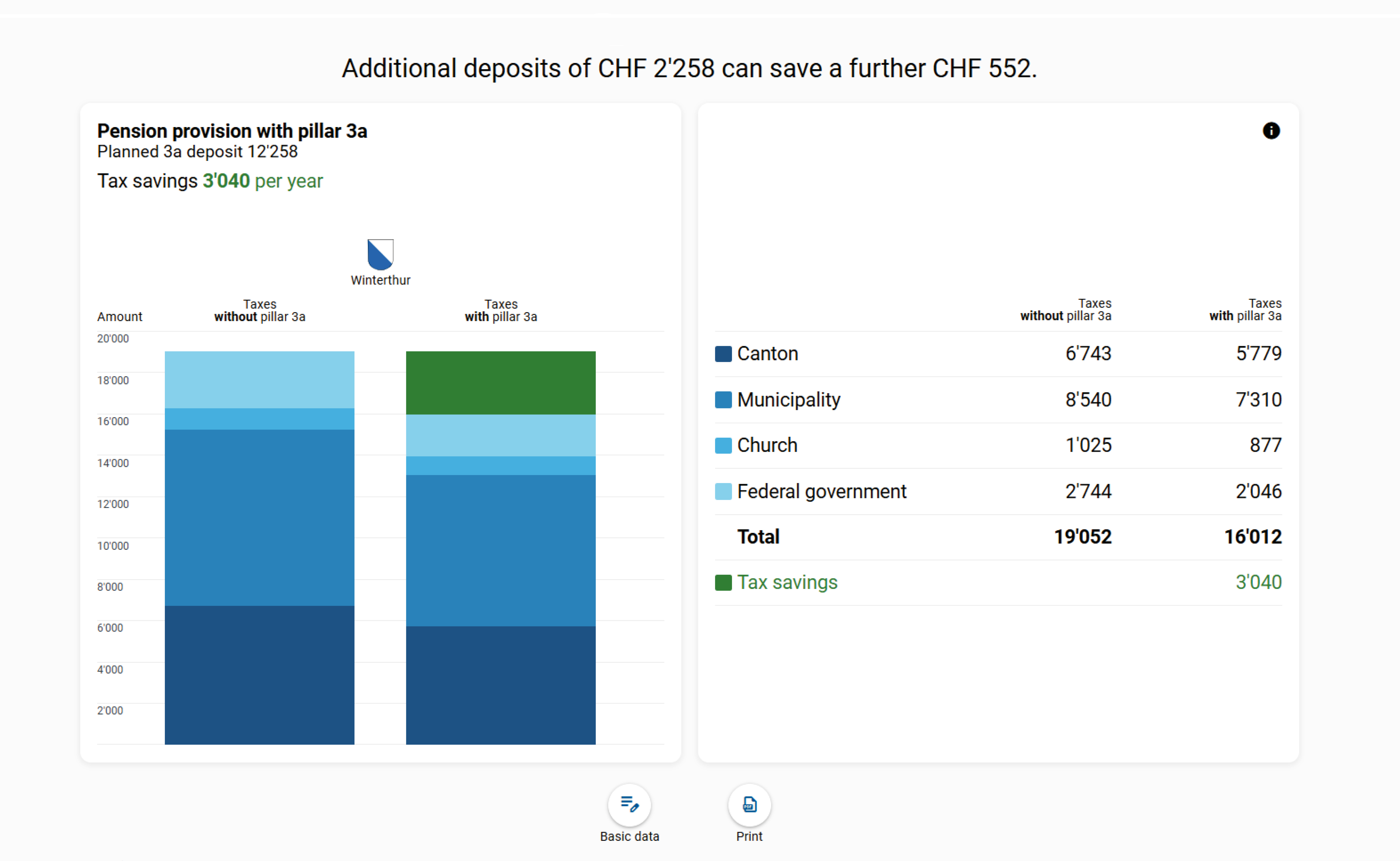 Quickly and easily calculate the tax savings you can achieve by paying into pillar 3a. If the amount available for pillar 3a has not yet been exhausted, the calculator will show the additional potential tax savings.