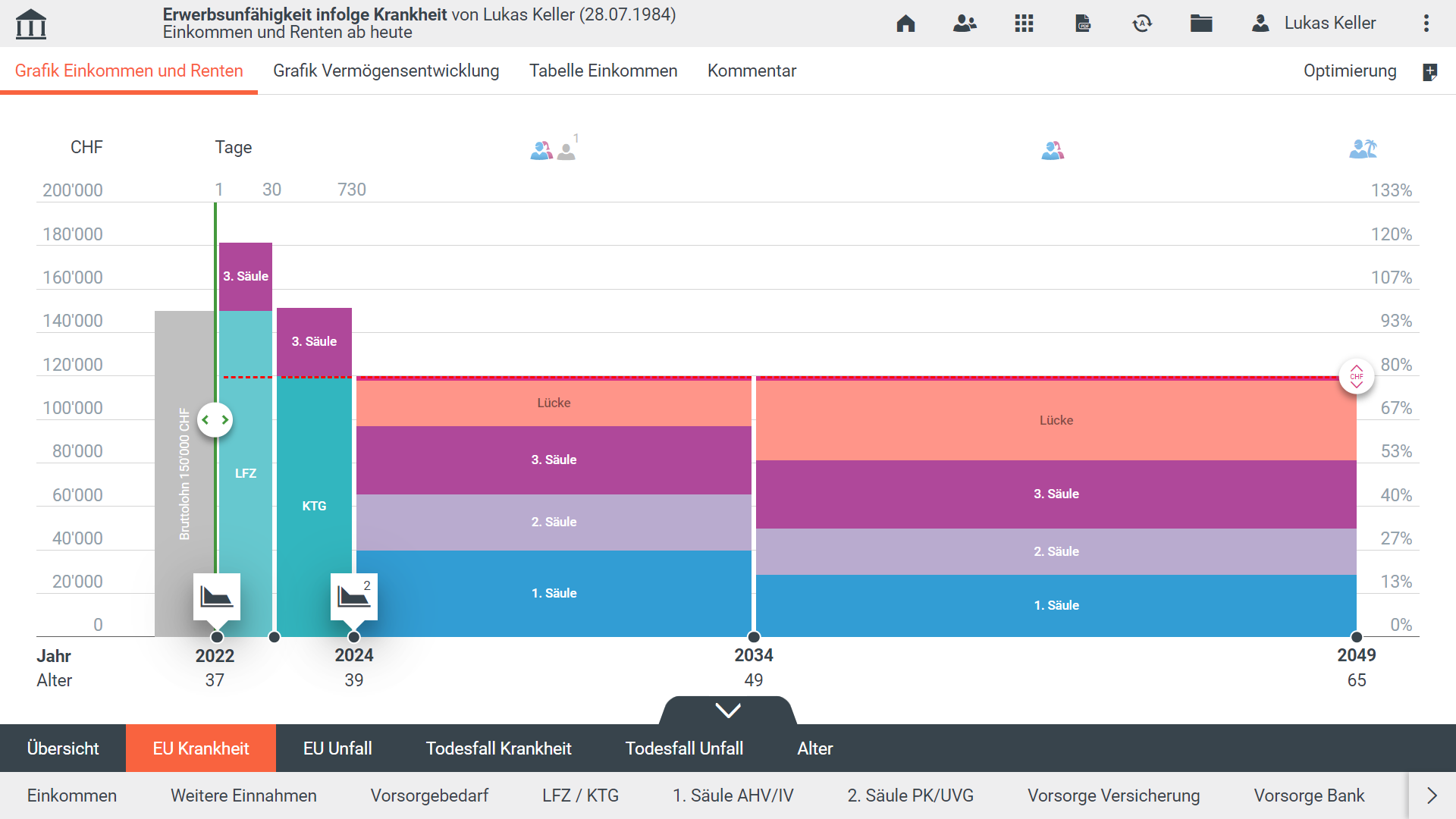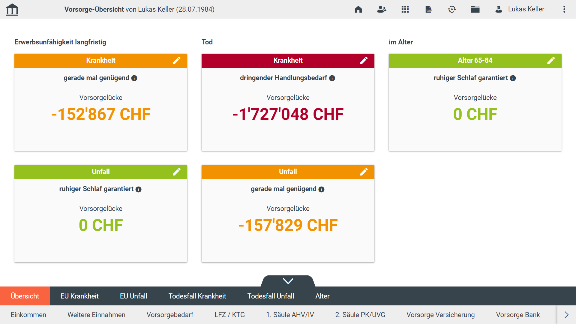 Mit dem Modul Vorsorge können einfache Vorsorge-Checks wie auch umfassende Risikoanalysen erstellt werden. Zwei konfigurierbare Modi (BASIC und PRO) bieten die Möglichkeit, die Funktionstiefe und -breite auf die Bedürfnisse einzelner Rollen zuzuschneiden.